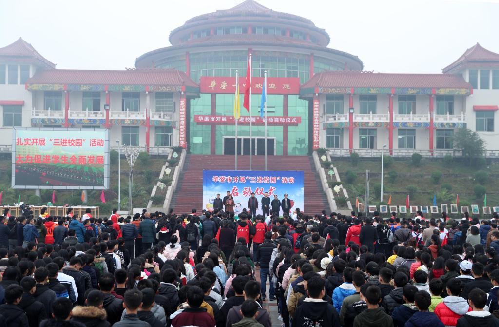 12月4日,我市在华蓥一中举行书法、快乐健康跑、足球“三进校园”活动启动仪式。市委副书记、市长谢洋波,广安市关工委常务副主任蒋登伦出席活动。